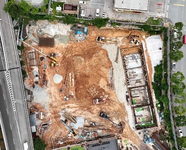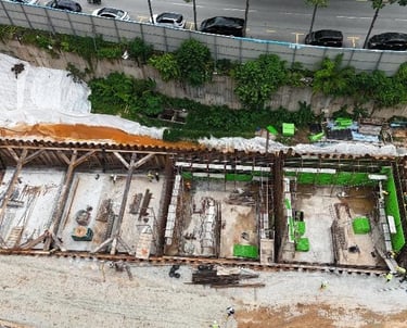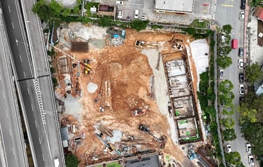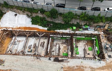 Monthly drone-captured aerial photographs provide a clear and comprehensive view of construction progress at the Sri Hartamas Sewage Plant. These top-down visuals help verify structural alignment, work sequencing and overall site coordination, ensuring transparency for stakeholders throughout each stage of development.