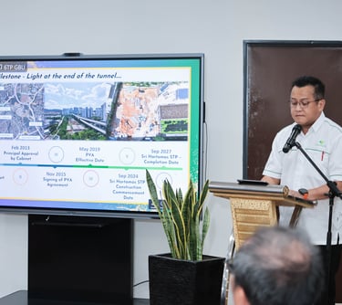 The official launching ceremony of the Sri Hartamas Sewage Treatment Plant (STP) marks a significant milestone in Malaysia’s commitment to sustainable wastewater management. The event was officiated by representatives from the Ministry of Energy Transition and Water Transformation (PETRA) and the Department of Sewerage Services (JPP), alongside key project stakeholders and partners.