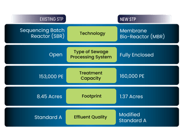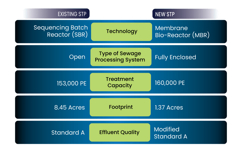 New STP: Reduced to only 1.37 acres, demonstrating exceptional space efficiency — freeing up land for potential redevelopment or green zones.